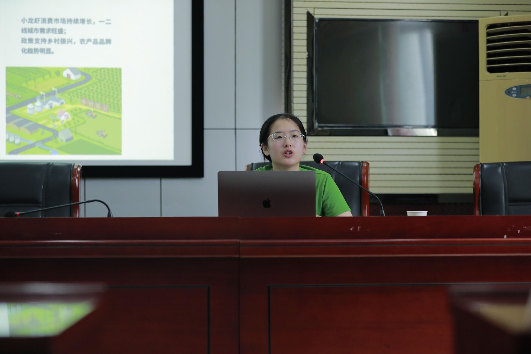 指导教师赵璇在分享了提升新媒体技巧后,针对陈浅村村支书提出的潘氏龙虾如何提升知名度的问题,给出了打造“生态稻虾”名片和产品升级的回答。