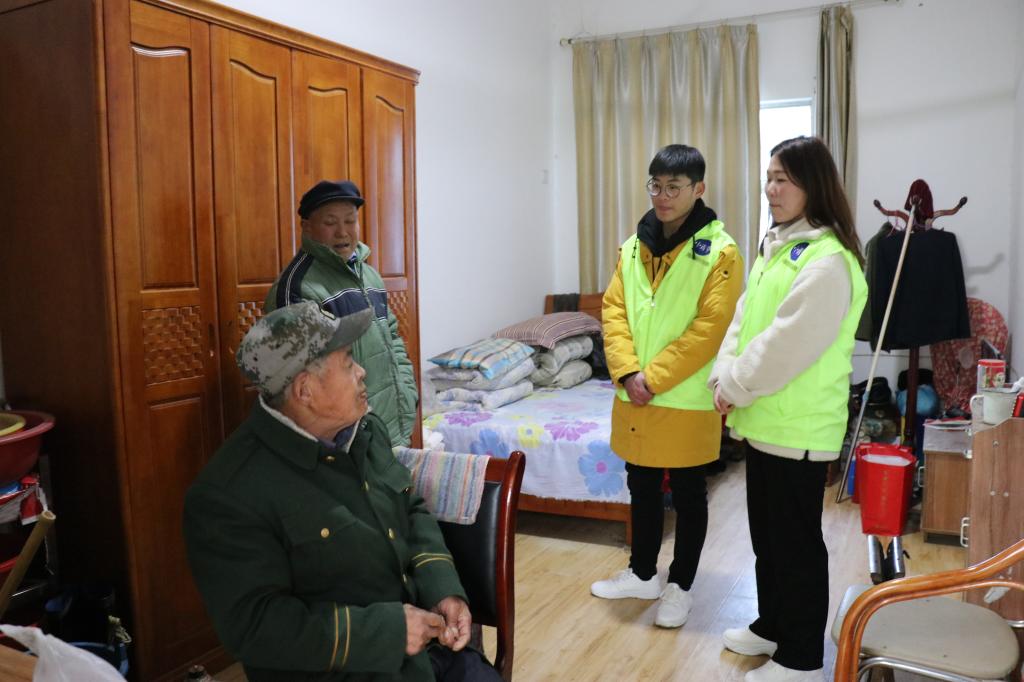 下午两点,“小青亭”志愿者们如期而至,志愿者们先与老人们拉起了家常,询问他们的身体、日常生活、饮食起居等情况,用心倾听他们的往事,逐渐拉近老人们与志愿者的心里距离,再用随身带来的指甲剪为老人们修剪指甲。此外,在朱婷婷书记的安排下,志愿者为老人们送去新买的鞋子并为他们穿上。“小青亭”志愿者青色的身影穿梭在敬老院内,一时间志愿者们已经成为敬老院一道流动的亮丽风景。最后在离开前“小青亭”志愿者们衷心祝愿敬老院的每一位老人身体健康、岁岁平安。
