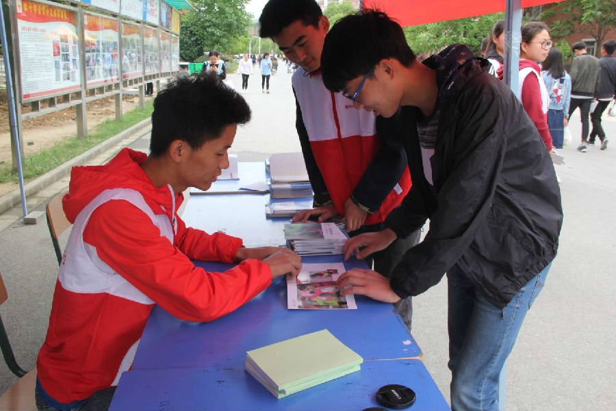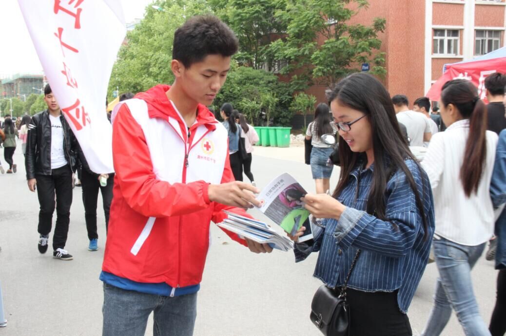 红十字事业是中国特色社会主义事业的重要组成部门,中国红十字会是党和政府在人道领城联系群众的桥梁和纽带。党和国家高度重视这支力量。至此,在第69个“世界红十字日”到来之际,我院于5月13日上午在女生宿舍一号楼下举行“处处为人人”5·8博爱周的宣传活动。