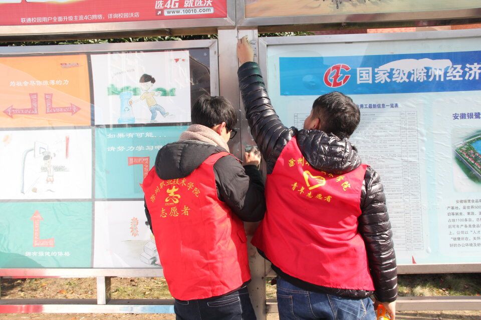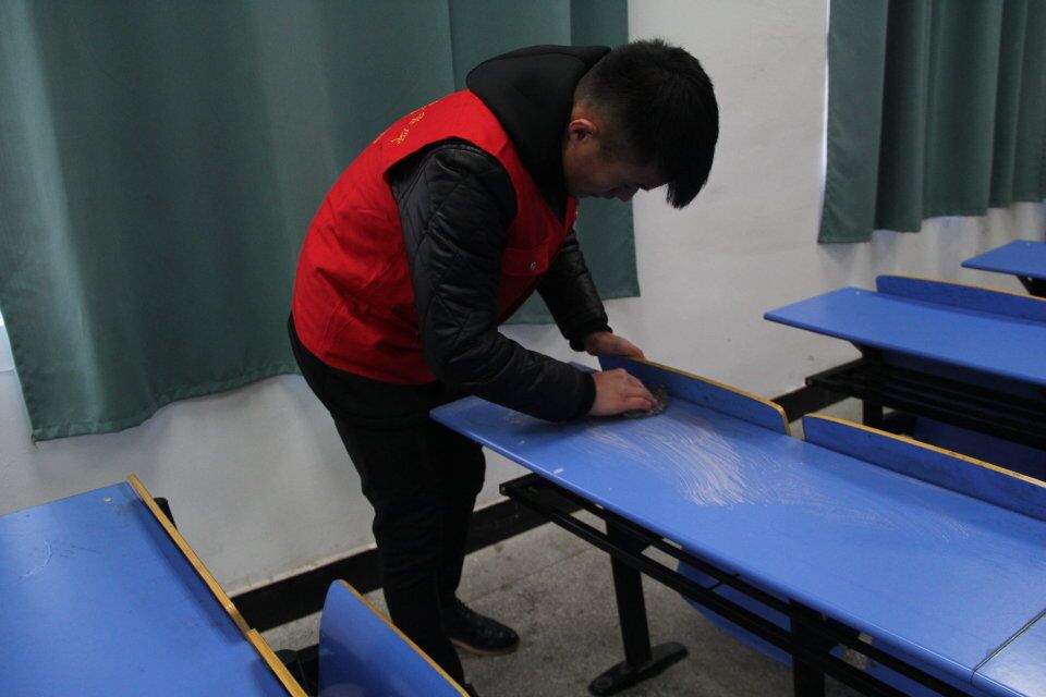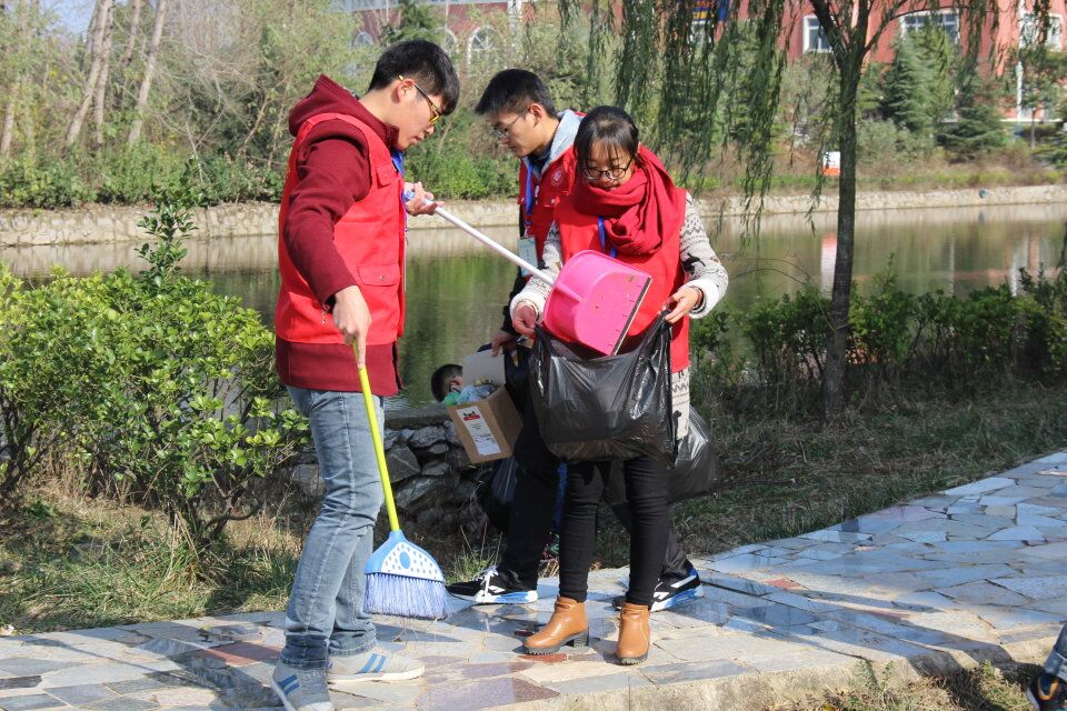在12.5国际志愿者日到来之际,院团委组织青年志愿者对教室及教学楼、宿舍之间的绿化带、橱窗进行了打扫、清理。