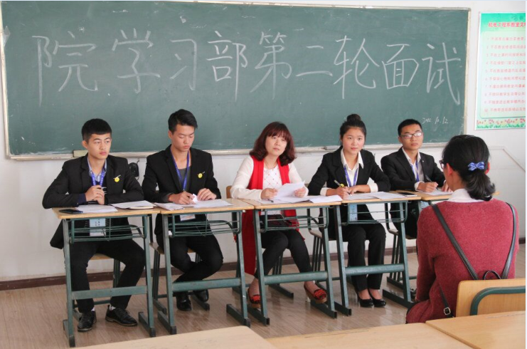 此次招新共经历了宣传报名、笔试、第一轮面试、第二轮面试等环节。在最后一轮的面试中,学院团委全体老师及各系团总支书记到场并担任评委打分。