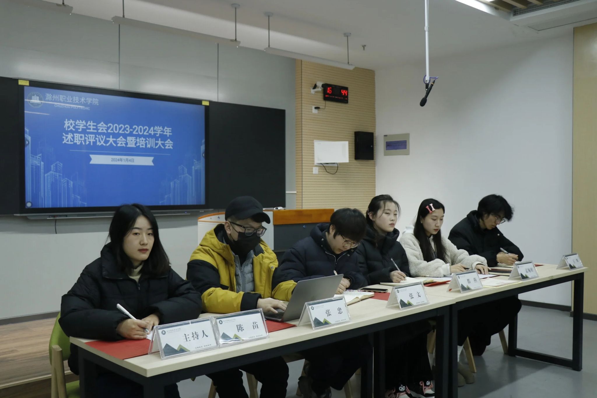 2024年1月4日,校学生会在大学生活动中心315教室召开述职评议大会暨培训大会。本次会议由校学生会指导教师陈苗主持,校团委副书记张文、校团委张忠及校学生会全体成员参加。