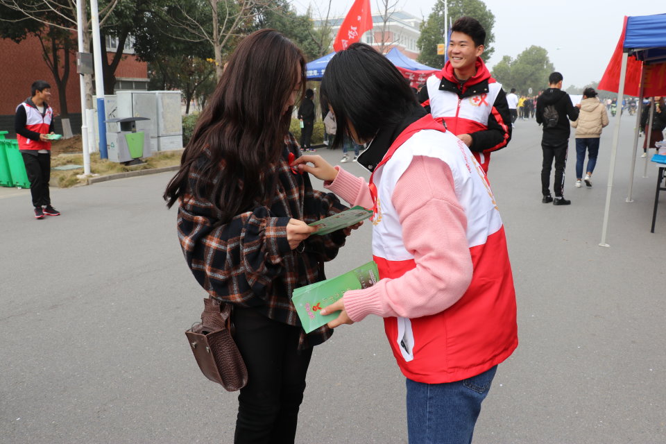 爱心呵护生命,行动抵御艾滋。为了使更多的人了解艾滋病,正视艾滋病,更好地遏制艾滋病的传播和蔓延。2018年12月1日,我校红十字会成员在校内女生宿舍一号楼下开展了以“主动检测 知艾防艾 共享健康”为主题的预防艾滋病知识宣传活动。