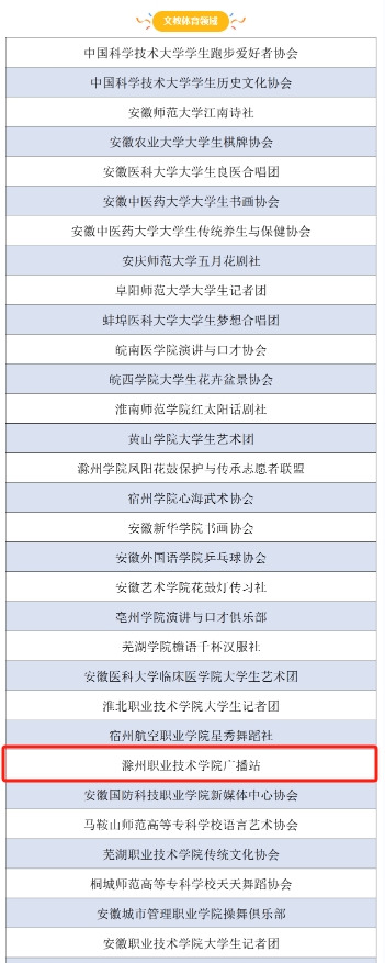 我校社团“广播站”入选团安徽省委、安徽学联开展的2023-2024学年安徽省高校联通杯“活力社团”风采展示活动。此次活动由学校推荐报名、经省级相关部门评审,结合抖音“活动落地页”点赞、日常工作开展情况等选出,通过新媒体方式集中展现安徽高校学生社团改革建设成果和典型经验。