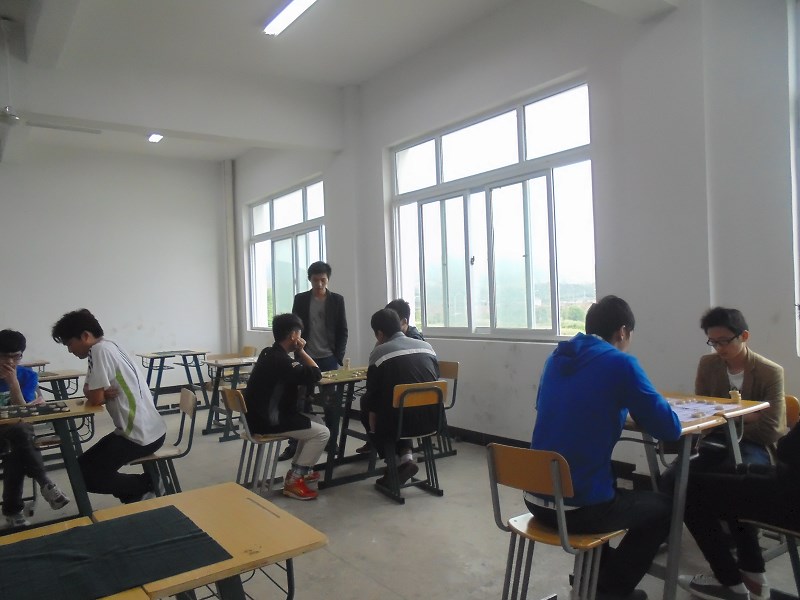 2013年5月18日,初赛在我校教学楼七号楼举行,比赛采取淘汰制,胜者晋级,败者淘汰。两校各出32人参加比赛,采取随机抽签的方式决定谁与谁对决,选手们在小小的棋盘上斗智斗勇,争锋相对。裁判员端坐在一旁一丝不苟的执行比赛的规则,充分的体现了比赛的公正性。参赛选手就比赛竞争性并不给予过度的关注,以下棋为主,以乐为目的,友谊第一,比赛第二。赛出了风格,赛出了棋品!最后决出了16强选手。
