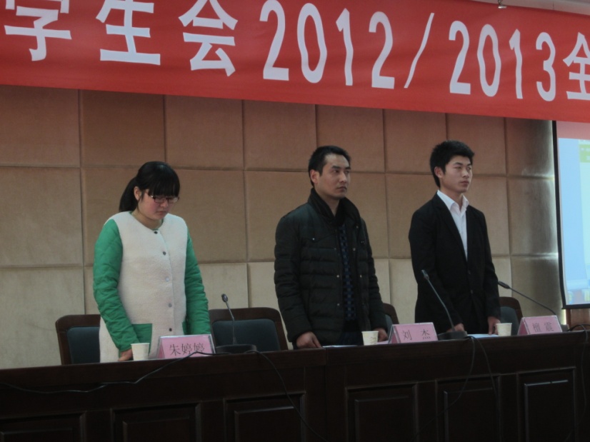 2013年3月4号中午,amjs澳金沙门线路首页学生会全体大会在综合楼五楼学术报告厅举行,出席本次大会的有:院团委副书记刘杰、院学生会指导老师朱婷婷,参加本次大会的还有院学生会主席檀震、各系学生会主席、学干代表以及院学生会全体成员 。