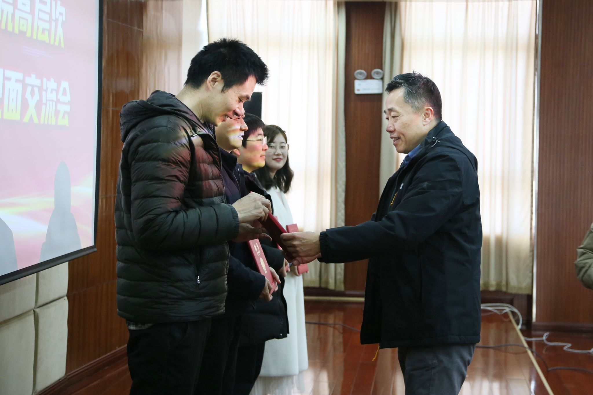 交流会上,曹付忠同志为省级“产业教授”颁发了聘书,杨家庆同志为博士研究生颁发了聘书。