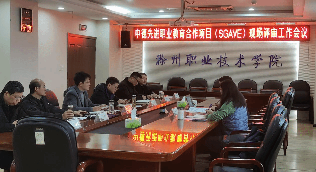 2024年3月14日上午9点,中德先进职业教育合作项目评审专家潘涛、何朝晖到校进行项目申报现场评审工作。校党委委员、副校长苏有良主持会议,实验实训中心主任曹晓斌、继续教育学院院长李永泉、教务处处长唐义武、电气工程学院院长张信群、副院长燕相松参加会议。