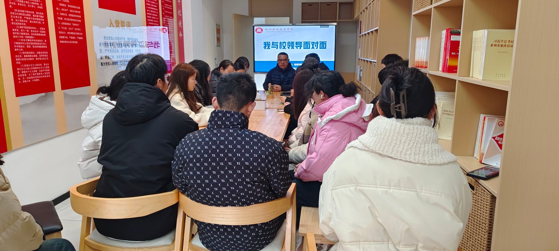 座谈会上,学生代表们畅所欲言,围绕教育教学、生活服务、就业、实习等话题提出意见建议。两位领导认真倾听每位同学的心声,并与同学们交流互动,耐心解答每一位同学的疑惑,为同学们的健康成长与全面发展提供了有针对性的指导。
