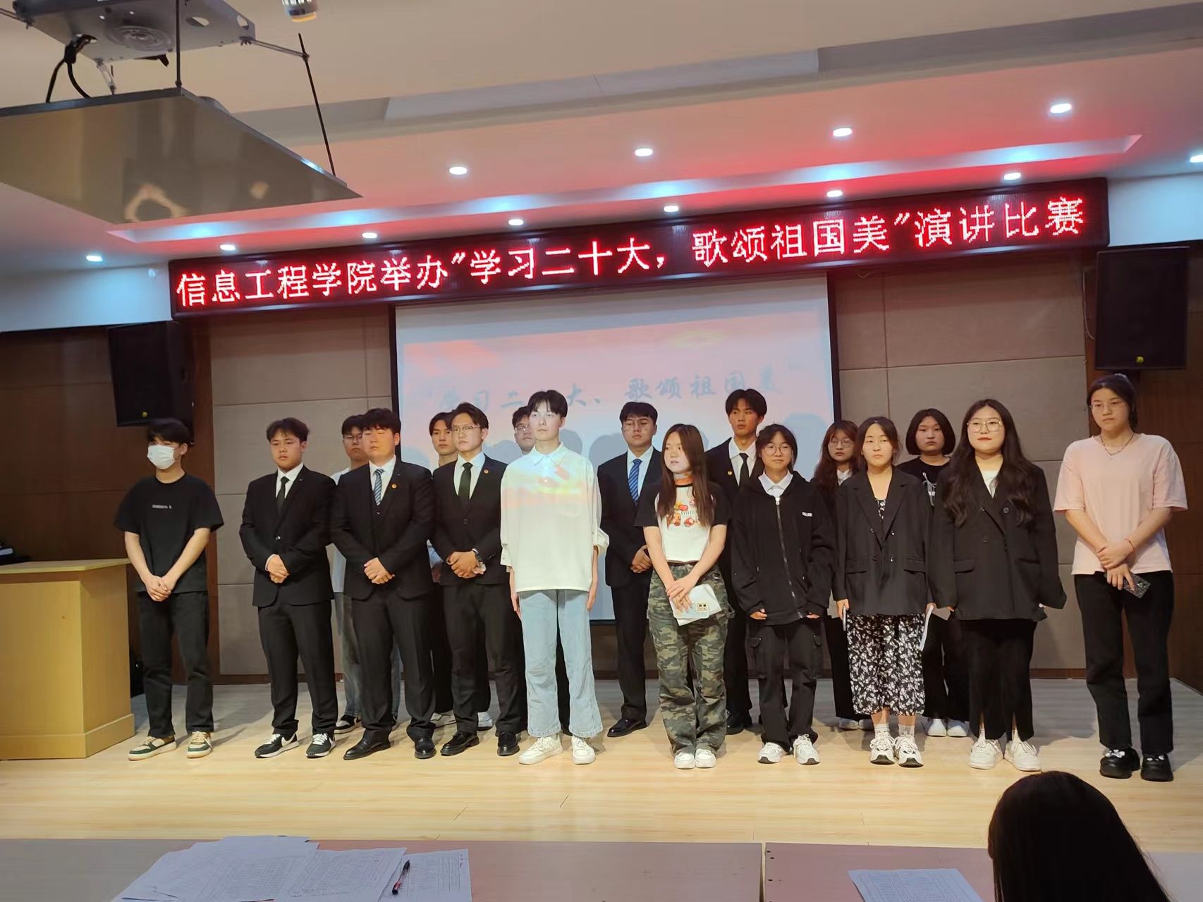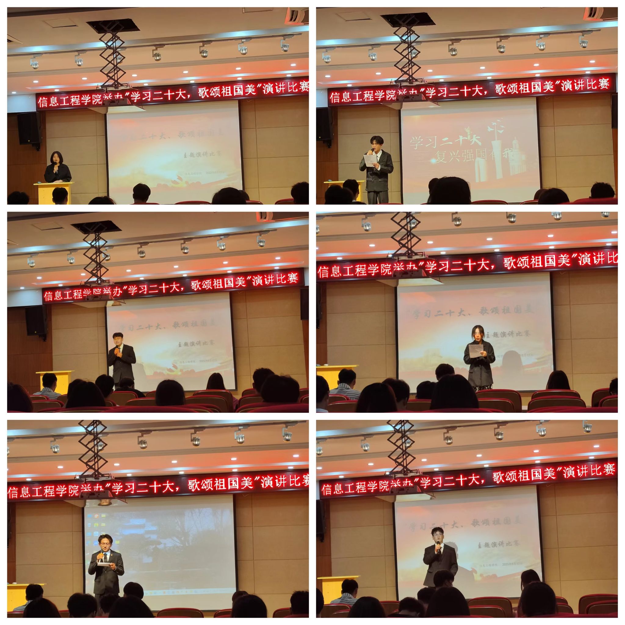 为深入学习宣传贯彻党的二十大精神,激发同学们的爱国热情。5月17日,信息工程学院在南阶203开展了第二十届校园文化艺术节之“学习二十大,歌颂祖国美”主题演讲比赛。