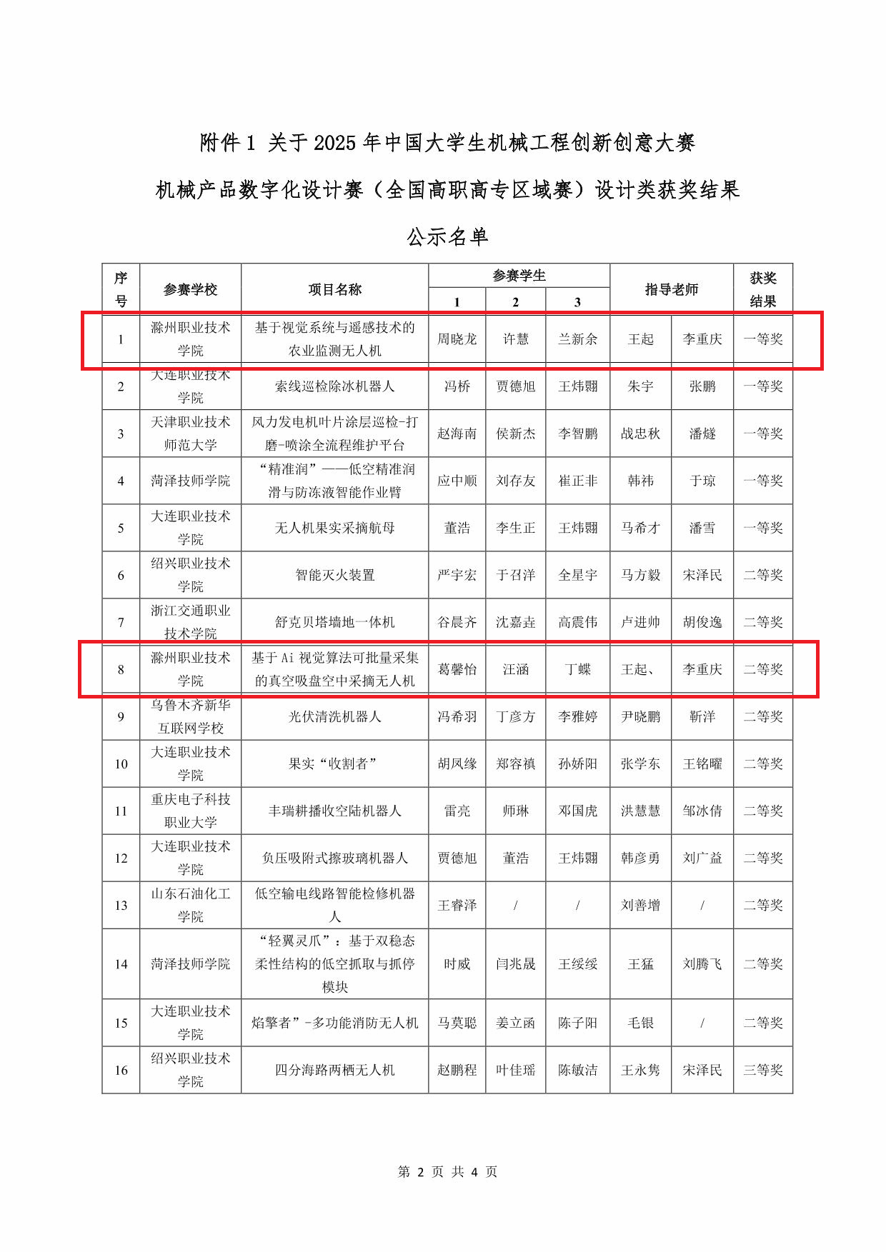 在6月27日举行的2025年中国大学生机械工程创新创意大赛——第十四届机械产品数字化设计赛“博盛睿创”杯全国高职高专赛区域赛决赛中,我校传媒与设计学院设计艺术系工业设计专业两支学生队伍表现优异,从全国56支强队中脱颖而出,分获区域赛第一名(一等奖),第八名(二等奖),并全部晋级全国总决赛。