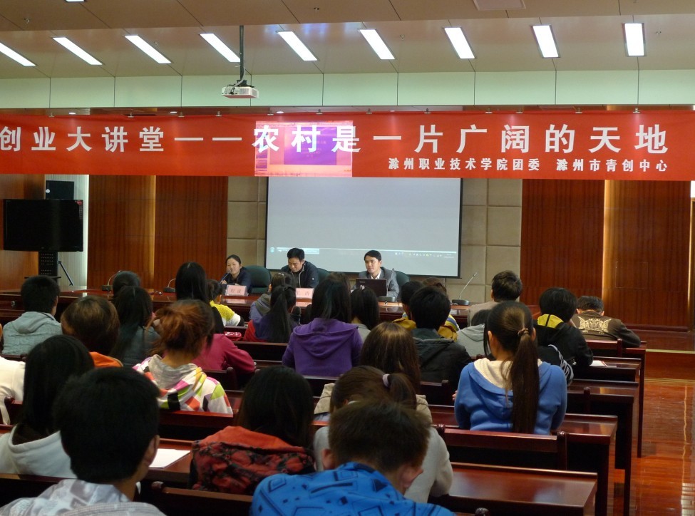 为了提高大学生的创业意识,增强大学生的创业意识和创业信心,在滁州团市委和滁州市青年就业创业服务中心的支持和帮助下,院团委主办了创业大讲堂系列活动。2012年10月24日下午,我们特地邀请了安徽省创业大学生先进典型时全同志来我院与同学们共同分享他的创业之路。滁州市青年就业创业服务中心主任王清也参与了本次讲座。讲座由团委副书记程诚主持。
