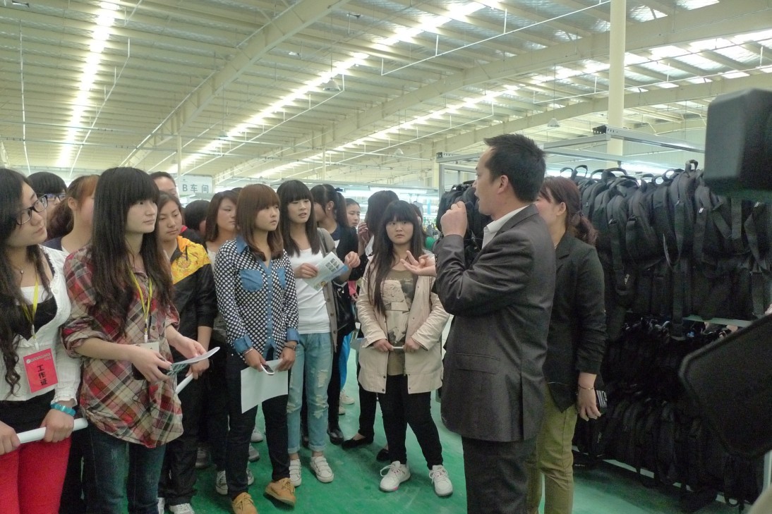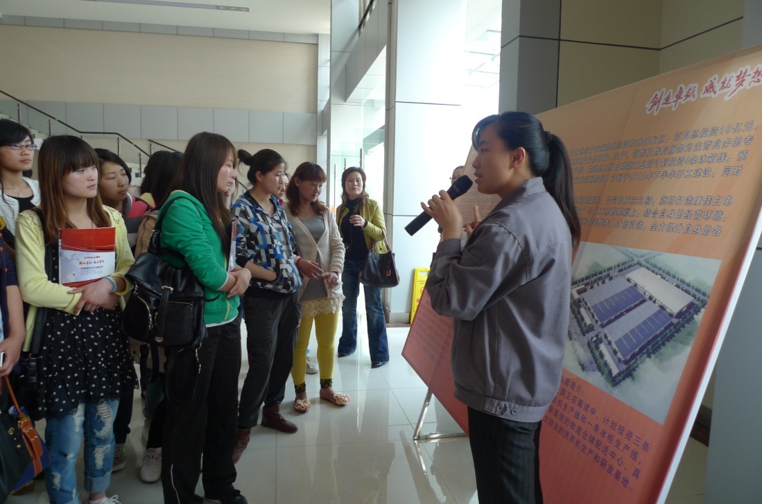 在院团委副书记程诚的带领下,学生代表前往三家企业参观,第一家是滁州博润电脑配件有限公司,主要生产电脑用的箱包。第二家是安徽康佳电子有限公司的电视产地,第三家是安徽康佳的冰箱产地。学生代表们参观企业的生产第一线,了解了产品的制作流程,企业的负责同志也详细的给学生代表们讲解企业的生产及运行情况,并热忱地欢迎同学们毕业后到企业来就业。
