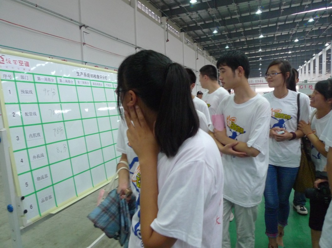 我们的最后一站是坂田电器。坂田电器是一家日资企业,主要生产空调。企业生产部经理带领大家参观了企业的流水线以及员工餐厅等各项配套设施。参观中,日资企业的企业文化和6S标准给同学们留下了深深的印象,在企业的宣传板旁,大家纷纷驻足,细细观看企业的6S标准化要求,并与我院的6S管理相比较。