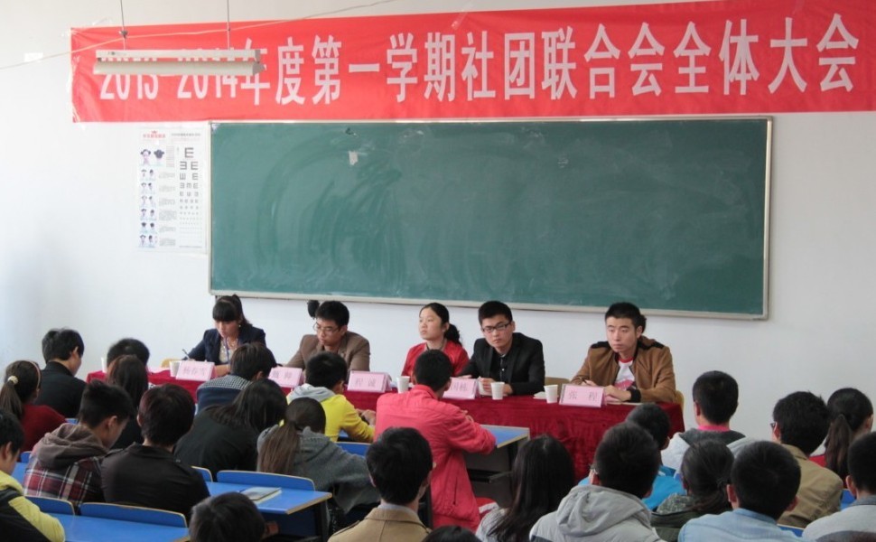 2013年10月25日中午12:30,我院2013—2014学年第一学期大学生社团联合会第一次全体大会在北阶206召开。参加此次会议的有院团委副书记程诚、社联指导老师甄帅、社联主席席国栋、副主席杨春雪、张程及各社团主要负责人和全体社联干事。