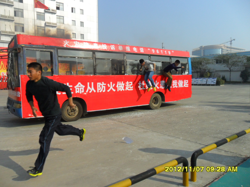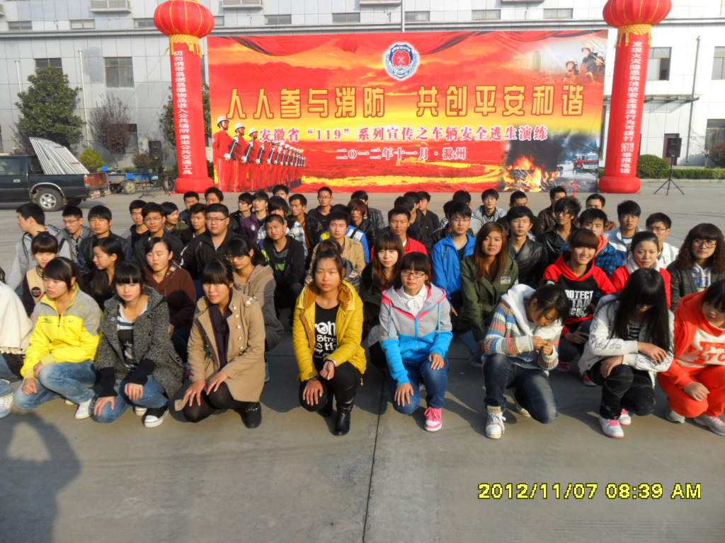 2012年11月7日上午,院保卫处组织学生参加由市消防支队牵头组织的安徽省“119”系列宣传之车辆逃生演练活动,我院各系部学生干部共96人参加了演练活动。此次演练主要是以北京“7.21”特大暴雨事故为背景的车辆逃生演练活动,教育学生遇突发情况如何从车内进行逃生,切实保证自身的生命财产安全。(图/文:陆凤林)