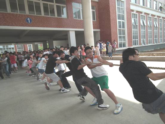作为庆祝中国共产党建党90周年的系列活动之一,由经贸系学生会、团总支举行的拔河比赛初赛于2010年5月18号下午3点在1号教学楼大厅进行。