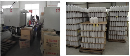 左图为金星实业保温瓶瓶壳生产车间 右图为金星实业生产的保温瓶未上色瓶壳