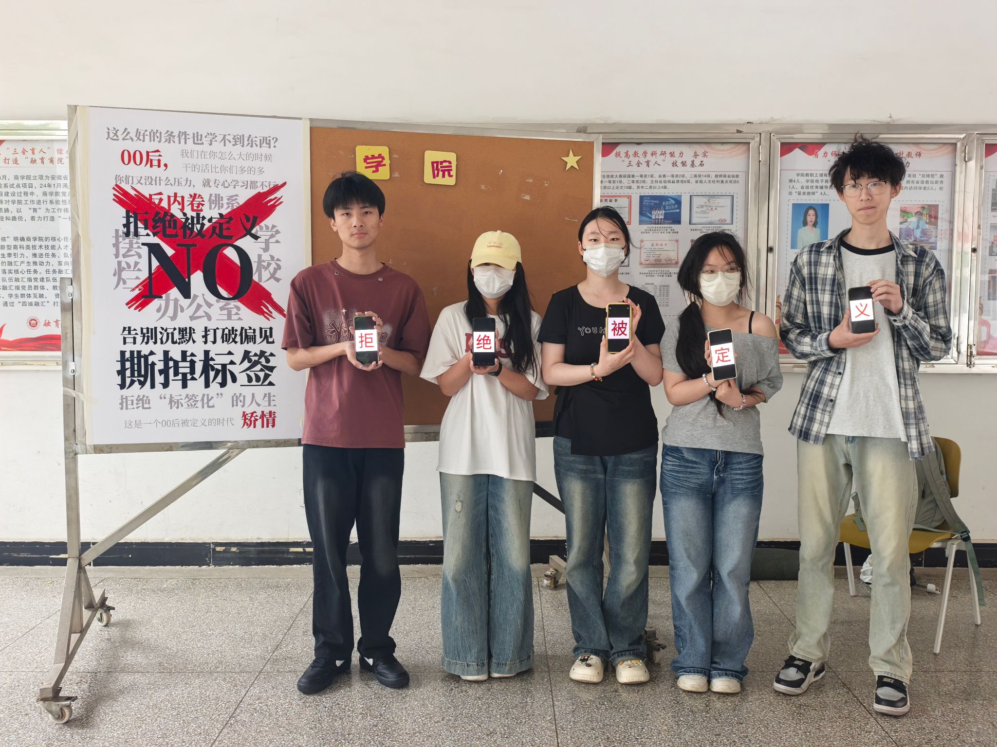 活动现场,展示板上贴满了诸如“都这么胖了还一直吃”“一个女孩子打扮的花枝招展给谁看”“大专生就要进厂的”等带有刻板印象的标签。在当今社会,大学生群体面临着来自学业、就业、人际关系等多方面的压力,同时,他们也常常受到各种外界评价和刻板印象的影响。这些带有刻板印象的标签不仅限制了他们的自我认知,还可能对心理健康产生负面影响。当同学们看到这些标签时,内心产生了强烈的共鸣与情感冲击。他们纷纷主动走到展示板前,亲手撕下那些令自己感到不适、束缚自我的标签。这一行为展现了同学们勇敢地向外界宣告,他们拒绝被简单地定义,渴望以真实的自我去面对世界。在撕标签的过程中,同学们的脸上洋溢着坚定与释然的表情,现场气氛热烈,充满了积极向上的力量。