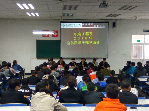 为将机电系的工作顺利开展,加深同学们间的了解于认识,相互团结合作。机电系2016年10月25号中午11:40在北阶104教室举行2016年全体团学干部见面会,机电系团总支书记张文、副书记吴昊宇、学生会主席王旭、李峰以及机电系团总支、学生会记者团全体成员参加了本次大会