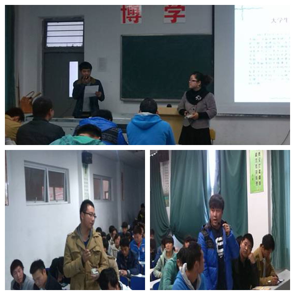 2013年11月22日上午,在机电工程系5号楼5102教室,13机电1班和2班同学围绕“大学生跳入粪池救老农值不值得”这一主题展开了一场激烈的辩论。