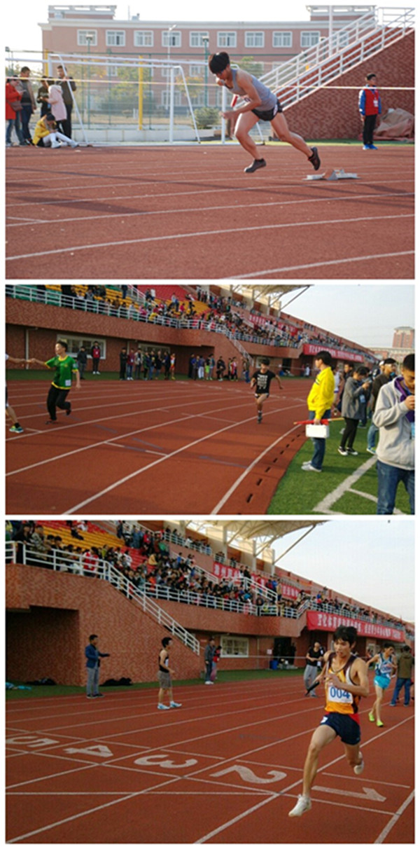 2014年11月12日下午15:30分,我院运动会甲组男子4*100米接力赛决赛准时开赛,随着裁判员的发令枪响起后,运动员们们犹如猎豹般飞奔而出。