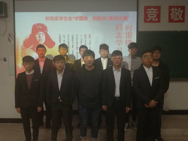 为进一步弘扬雷锋精神,营造生动活泼、积极向上的校园文化氛围;同时锻炼同学们演讲才能,提高语言表达能力,为同学们提供一个展现自我、提升自我的机会和舞台,机电系学生会学习部于2017年3月16日晚上7:00在5103教室开展“学雷锋,树新风”主题演讲比赛。