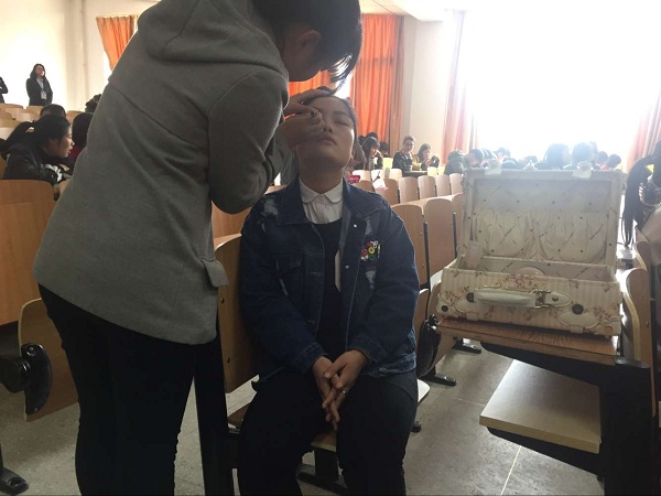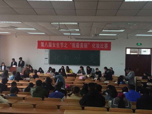 为了繁荣校园文化生活,营造积极向上的校园和谐氛围,以及为大学生提供展示才华的舞台。2017年3月15日中午11:40,由经贸系主办的“我最美丽”化妆比赛在南阶105教室举行,机电系女生积极参加。