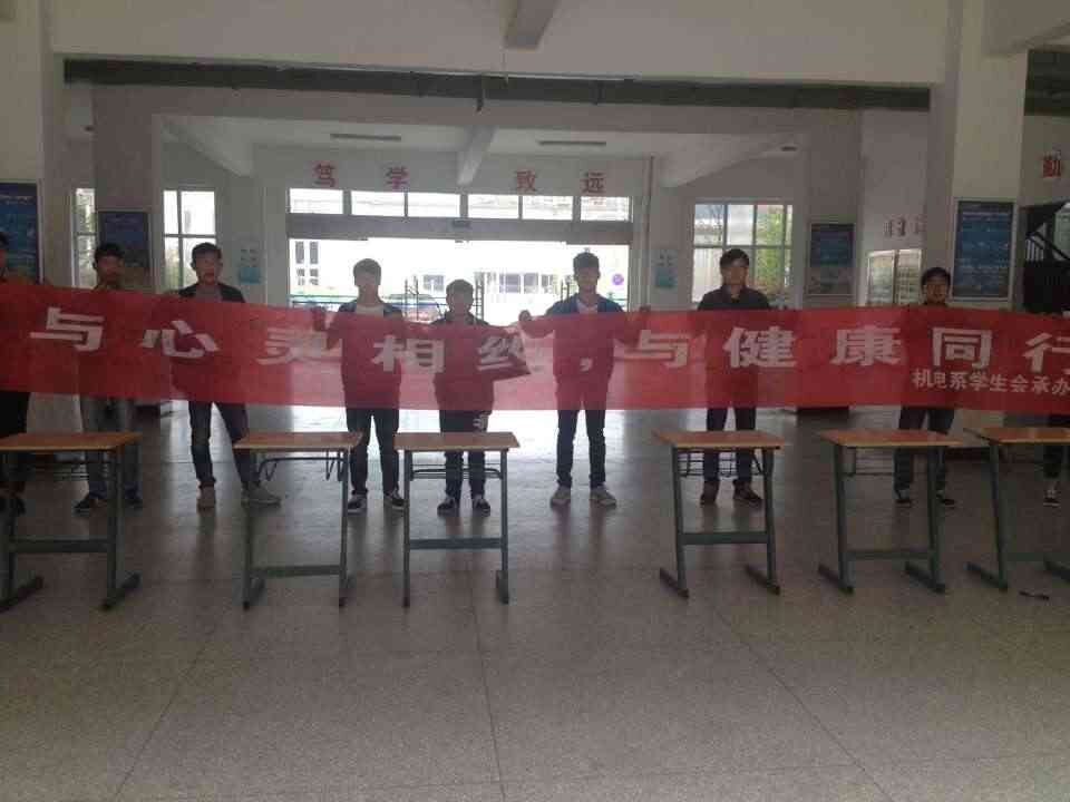 2016年4月12日中午,由机电系学生会秘书部精心组织的心理健康主题活动在机电系5号楼大厅举行。本次活动的目的在于提高学生对精神卫生的关注,旨在让学生们了解精神卫生,以积极向上的生活态度面对学习和生活。
