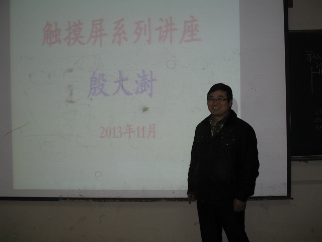 2013年11月20日(周三)下午17:00,在5号教学楼5403教室,来机电工程系电气教研室主任殷大澍副教授作了题为“触摸屏技术”的专题讲座。本次讲座由机电工程系主任杨思国副教授主持,机电工程系电气教研室骨干教师和部分学生参加了此次讲座。