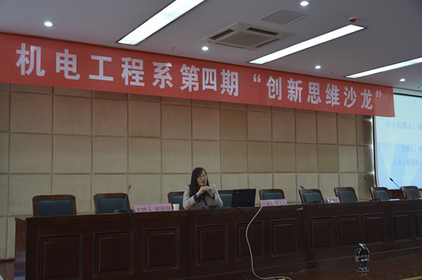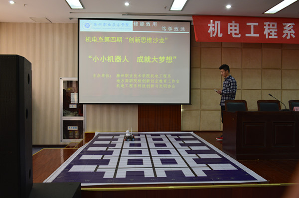 近日,由机电工程系、地方高职院校创新创业教育名师工作室、科技创新与发明协会主办,信息工程系协办的《机电系第四期创新思维沙龙——“小小机器人,成就大梦想”》在综合楼五楼报告厅举行。地方高职院校创新创业教育名师工作室部分专家、机电系辅导员出席了本次活动。科技创新协会全体成员、机电系学生代表、信息系学生代表共两百多名学生参加了本次活动。活动由地方高职院校创新创业教育名师工作室首席专家谢丽丽主持。