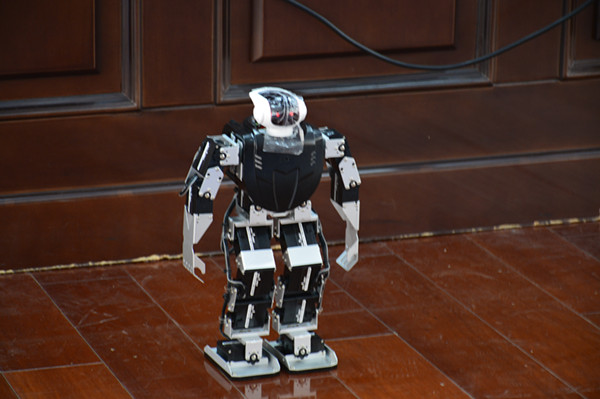 我校省赛智能车制作团队的选手们,向在场同学们展示了他们自己设计程序制作的智能车,最后的仿人机器人展示了倒立、翻跟头、舞蹈等项目,栩栩如生的动作迎来同学们雷鸣般的掌声。李老师还邀请现场机电系的同学们加入智能车制作团队中来。智能车制作团队的同学们展示的成果、取得的成绩极大的鼓舞了同学们创新创造的信心和勇气。