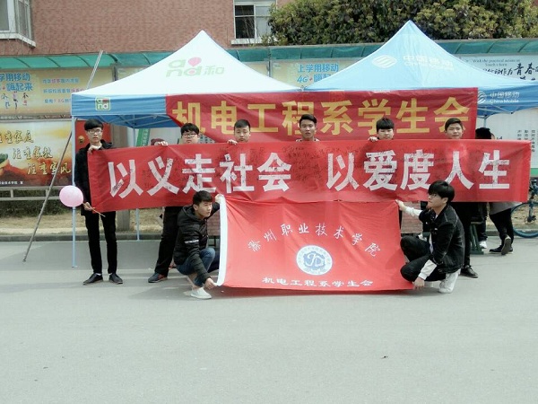 2017年3月17日中午12:00,机电系学生会安保部在女生宿舍楼一号楼下举办“以义走社会,以爱度人生”的爱心送气球活动,以此来传递雷锋精神。