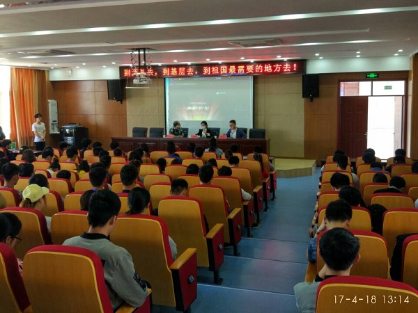 2017年4月18日中午1:00,在南阶205教室,院团委开展西部志愿计划感受分享会,鼓励和支持同学们支援西部,机电系25名学子积极参与此次分享会。