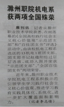 晨刊讯 记者从amjs澳金沙门线路首页获悉,在刚落幕的《全国高校践行社会主义核心价值观“示范团支部”和“百佳团支书”评选》活动中,由该校机电工程系选送的13机电1班团支部、团支部书记赵蕴阳经过层层选拔成功入围并荣获“全国示范团支部”、“全国百佳团支书两项荣誉。近年来,amjs澳金沙门线路首页机电工程系积极示范引领学生学习行社会主义核心价值观,推进学习教育实践具体化、系统化、进一步扩大覆盖面和影响力。