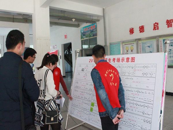 4月14日下午,志愿者分为车站与学校内两批进行工作,一批在火车站内接引从各地赶来的考生,并指引考生们前往学校。校园内,志愿者们在大厅内摆点,对熟悉考场的考生们进行解说。15日早8点,志愿者们顶着烈日高温进行志愿服务,火车站、公交车站、机电系考场充斥着他们忙碌的身影,他们不厌其烦的为前来参加考试的学子们进行指引和解说。直到考生们离开校园才得以空闲,尽管如此,志愿者们仍表示能够为学生作出引导很开心。