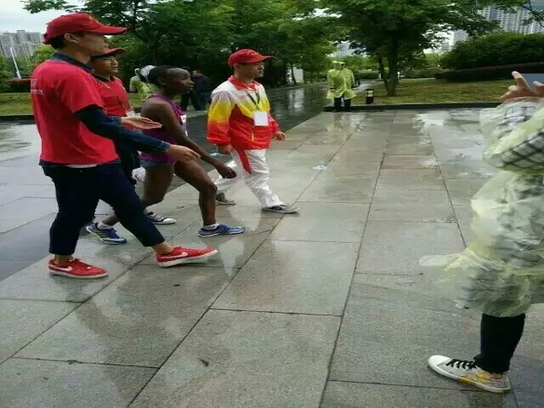 2016年5月15日,比赛开始时间为早上7:30,为保证提前到岗进行服务,志愿者们当天4点就已经起床进行准备,穿好指定服装,带好所需物品在学校大门口集合,前往指定位置进行志愿服务。恶劣的天气阻挡不了志愿者的热情,赛道上随处可见志愿者,他们在风雨中坚守着自己的岗位。比赛结束后,志愿者有和工作人员一起整理场地,将场地恢复原状。