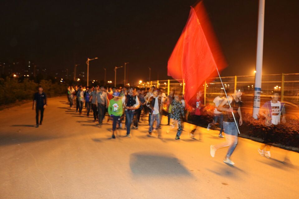 为了强化体育课和课外锻炼,促进青少年身心健康、体魄强健”的精神,机电系学生会于2016年4月21日晚上,在7号宿舍楼下举办三走系列活动“荧光夜跑”。