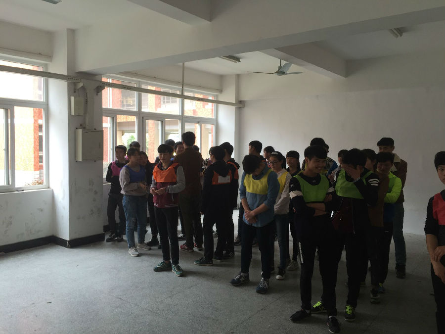 此次游戏分为两部分,第一部分是同学们通过小游戏的优胜赢得积分,获得优先进场权;第二部份是各组在特定的区域内寻找7张卡片,这期间,每组队员要相互协作,保护好自己的名牌,被撕即淘汰,找齐7张卡片的队伍获胜。 2:30同学们齐聚技师学院操场,根据提前选好的分组,各自组成1, 2, 3, 4, 5组,并贴上写有自己名字的名牌.五个小组先后进行了“绑腿跑”、“引导走迷宫”的较量,最后3组获得优先进场权。