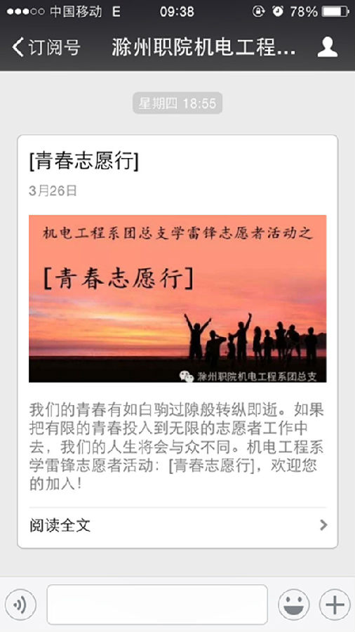 机电工程系团总支青年志愿者服务队在学习雷锋月期间,积极组织志愿者开展各种学雷锋活动。弘扬“学习雷锋,奉献他人,快乐自己”的志愿者精神,进一步深入贯彻社会主义核心价值观,倡导时代新风正气。同时通过微信来宣传他们的主要事迹,倡导更多的同学能够加入到学雷锋志愿者的大家庭来。