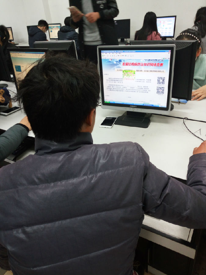 学校是学生群体生活的主要场所,存在着不小发生结核病的风险。为加强学生对结核病的关注,机电系于2016年2月26日中午在5402机房,组织学生参加了全国首届结核病防治知识网络大赛。