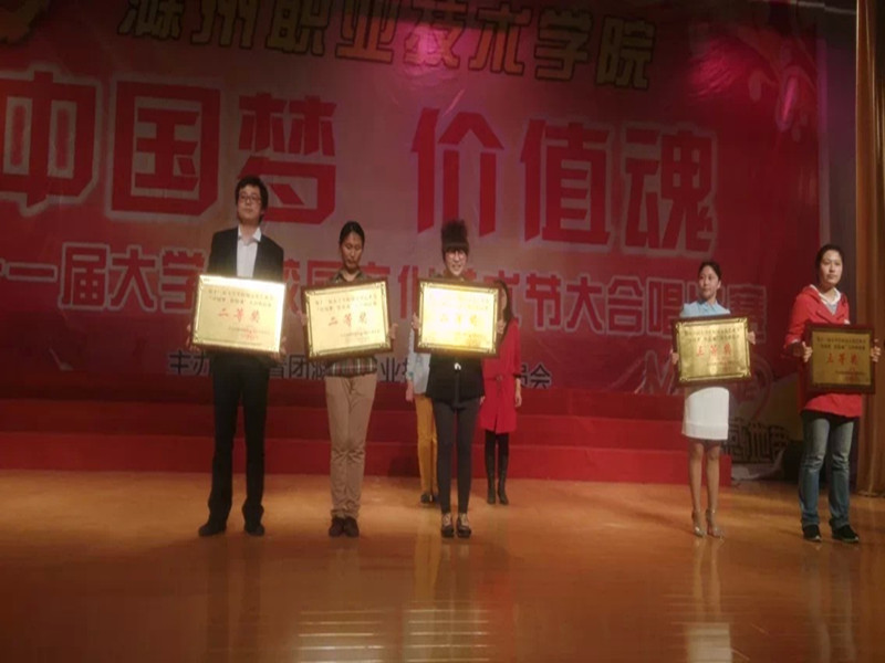 2014年5月7日下午三点机电系参加了学院举办的纪念五四运动95周年暨建团92周年表彰大会。此次活动以“中国梦,价值魂”为主题在礼堂隆重上演,大礼堂内灯光璀璨,人声鼎沸,全院八个系齐聚一堂,座无虚席。我系凭借《江山代有才人出》和《同一首歌》两首歌曲出色的表演,动情的演唱在大合唱比赛中荣获二等奖。