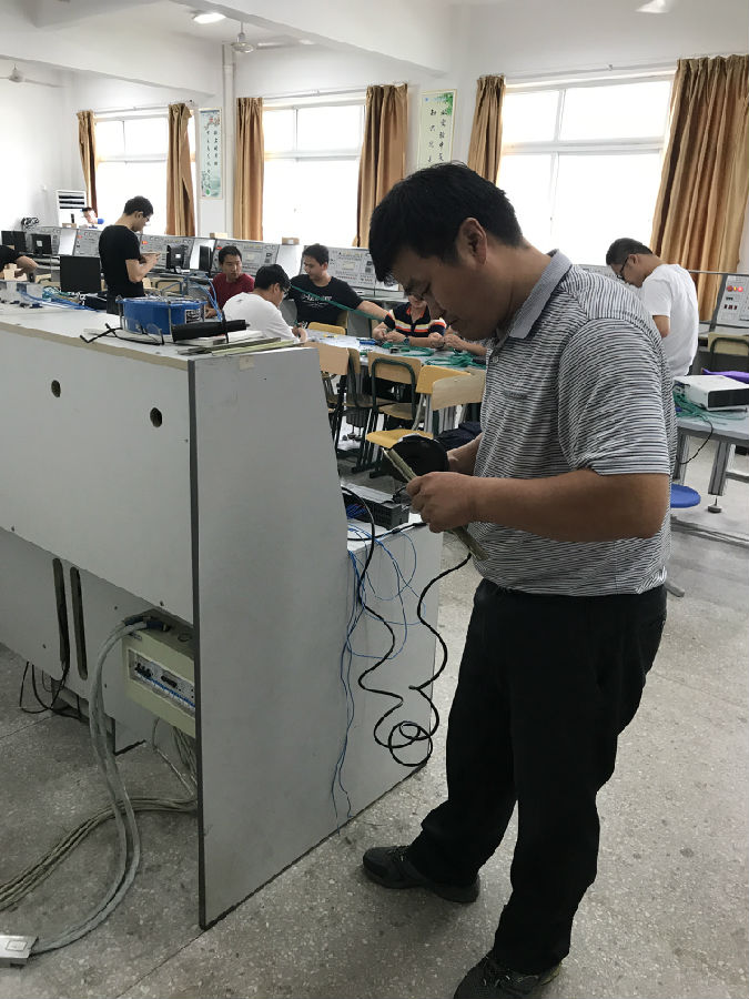 我系综合模拟实训室始建于2001年,随着实训设备逐渐老化和工业控制技术的更新换代,该实训室已不能满足我系PLC实训课程的教学需求,在今年申报新建PLC实训设备再次流标的情况下,为了不影响日常教学正常开展,在机电工程系主任杨思国的支持下,各教研室主任积极响应,利用周末休息时间,不计报酬,自带工具来到实训室,从钻孔、磨导轨圆角、打线号、接线到安装计算机和PLC 、安装调试软件全部由老师带领学生自主完成。整个改建过程中严格遵守工业技术规范,发扬工匠精神,高标准严要求完成每一个技术环节,改建效果完全符合教学需求。