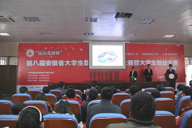 12月8日,由省教育厅、省人力资源和社会保障厅、共青团安徽省委联合主办的“昆山花桥杯”第八届安徽省大学生职业规划设计大赛暨大学生创业大赛半决赛(第三赛区)在宿州学院落下帷幕。机电系选手李星宇、宋庆园、郭庆三位同学组建的创业团队代表学院参赛。