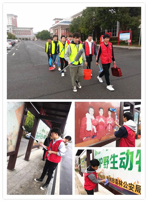 在团支书的带领下,志愿者们拿着清扫工具对公交站台的宣传窗进行擦洗、清扫站台垃圾、清除“牛皮鲜”等。经过两个多小时的清理,小小公交站台变得干净整洁,大家通过自己的努力为市民创造了一个良好的乘车环境。