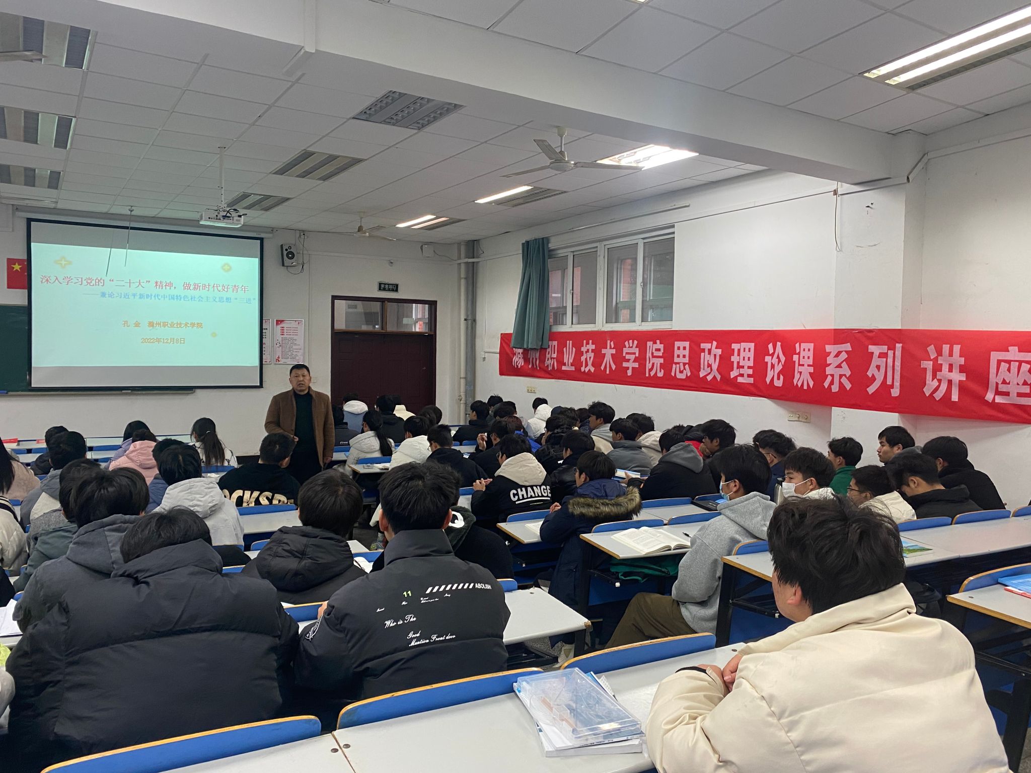 为切实学习宣传贯彻好党的二十大精神,12月8日,马克思主义学院副院长孔金副教授为2022级光伏工程班的同学们作了“深入学习党的二十大精神,做新时代好青年——兼论做好习近平新时代中国特色社会主义思想‘三进’”的专题讲座。部分思政课教师旁听了报告。