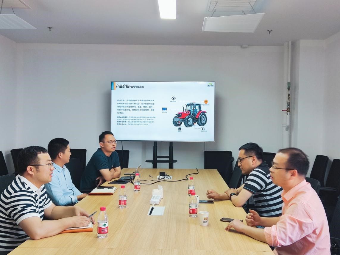 王跃介绍了企业发展状况、目前生产经营范围等基本情况,着重介绍了公司在农业方面的软硬件研发产品,如大田植保无人机、北斗导航农机自动驾驶系统、智慧农机管理平台等。杨章林从专业角度对企业研发的自动驾驶系统提出自己的见解,在技术层面与企业人员进行交流,并就在农田工作的带有监控导航的系统所涉及的信息安全问题与对方做了深入探讨。