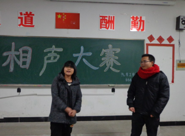 在观众热烈的掌声中,比赛正式开始,第一组选手的表演让评委和观众眼前一亮,他们以传神的表演赢得所有人的好评,接下来几组的表演也异常精彩,第三组和第四组更是以同一个节目PK,火药味十足。第五组选手的默契配合向我们展示出了相声中捧与逗的精妙。第六组的多口相声也给了观众耳目一新的感觉。经过一番激烈的比拼,本次比赛的前三名最终揭晓,来自计辅班的选手余俊、余佩佩夺得桂冠,汽检(3)班的选手肖中寒、许海涛取得第二,机制(1)班陆培吉、唐帅、王东摘得第三名。最后主席对此次比赛做了最后总结,并对选手提出建议。