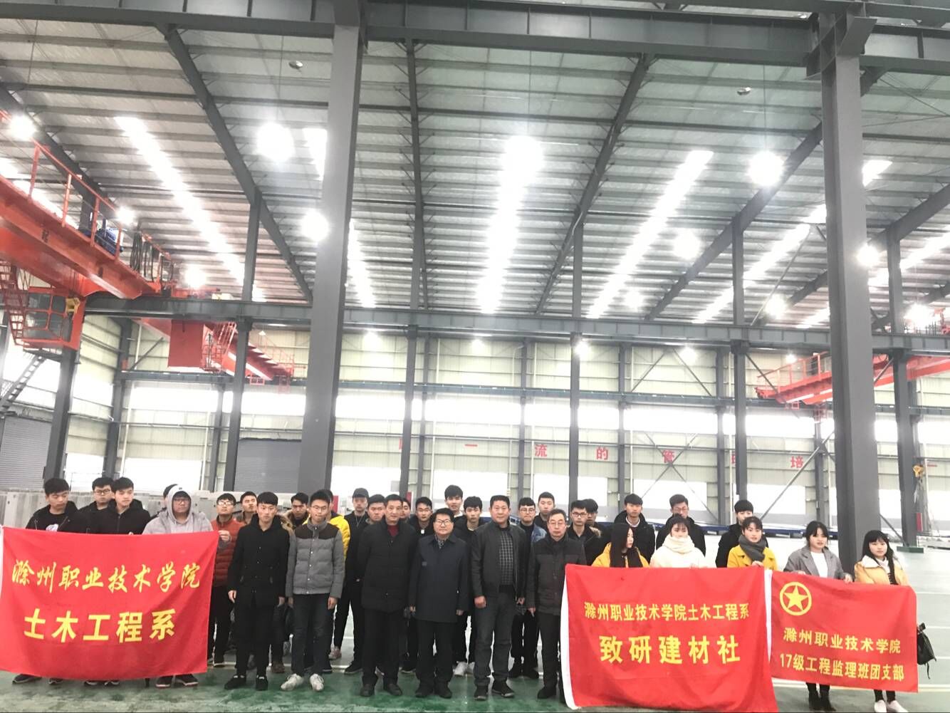 12月15日上午,通过精心组织,由系副书记陈兴友、建工教研室林祖宏副教授、实训中心李玉荣老师带领系学生会、致研建材社、17监理班及其他班级的38名同学到来安县汊河经济开发区的滁州现代建筑科技股份有限公司考察学习新型预制钢筋混凝土构件(简称PC板)。