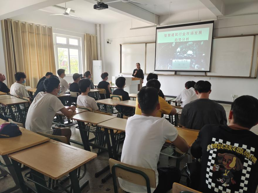 202205月27日,建筑工程学院冯环副教授举办题为“智慧建筑行业市场发展趋势分析”的讲座,建筑工程学院相关专业学生听取了讲座